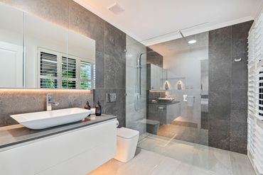 Luxuriate beneath the frameless glass rainfall shower, while taking in water and greenery views. Adjustable shutters allow the lower panels to create privacy while the upper panels filter the view. Ambient LED lighting and underfloor heating enhance the experience.
